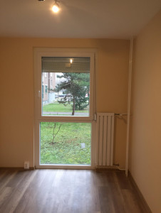 Ablakai parkra és parkolóra néznek, csendes környék.